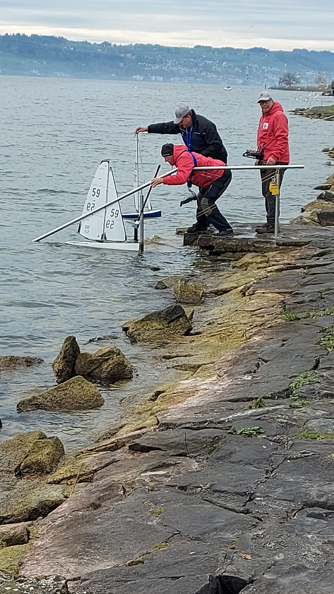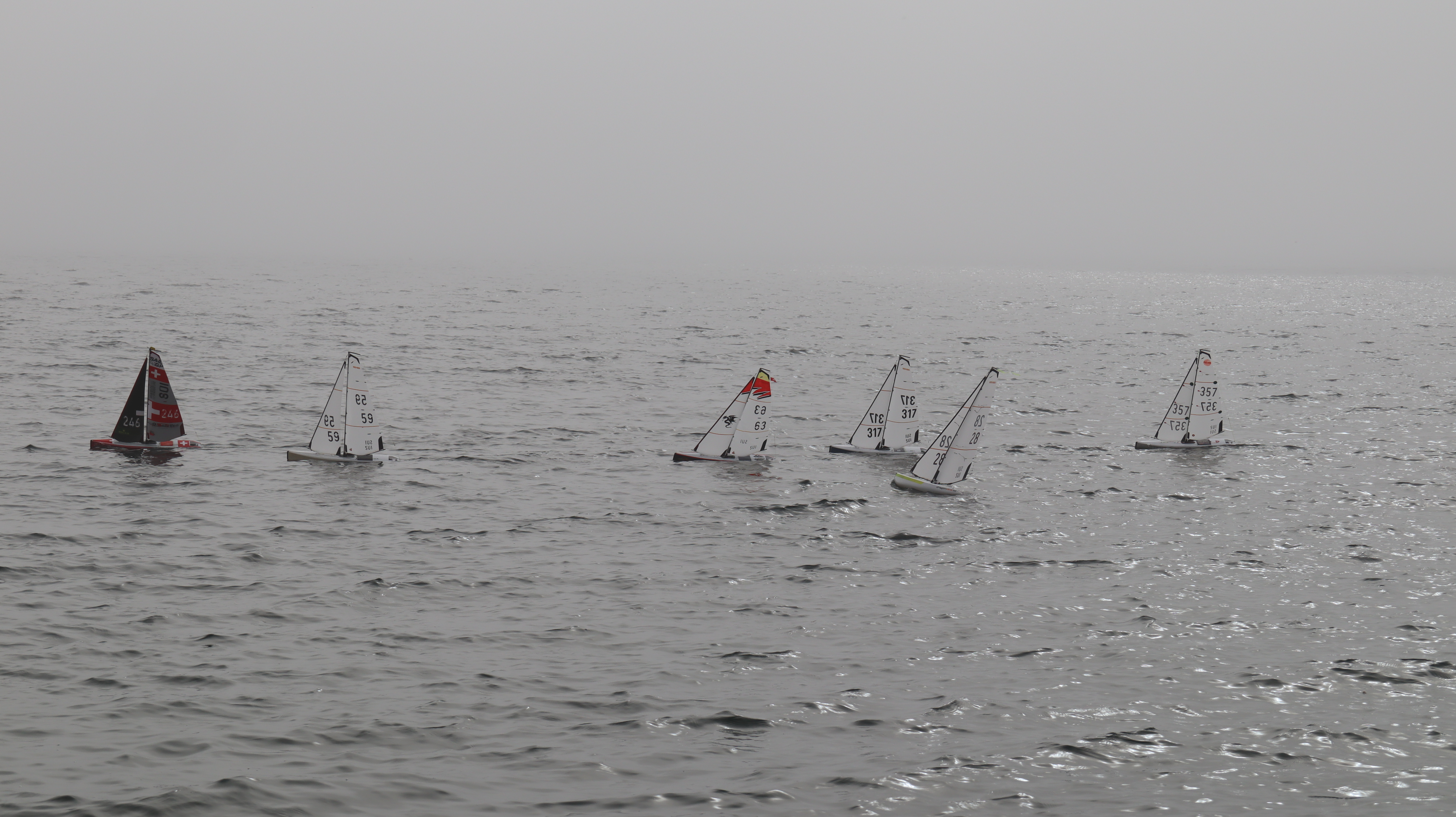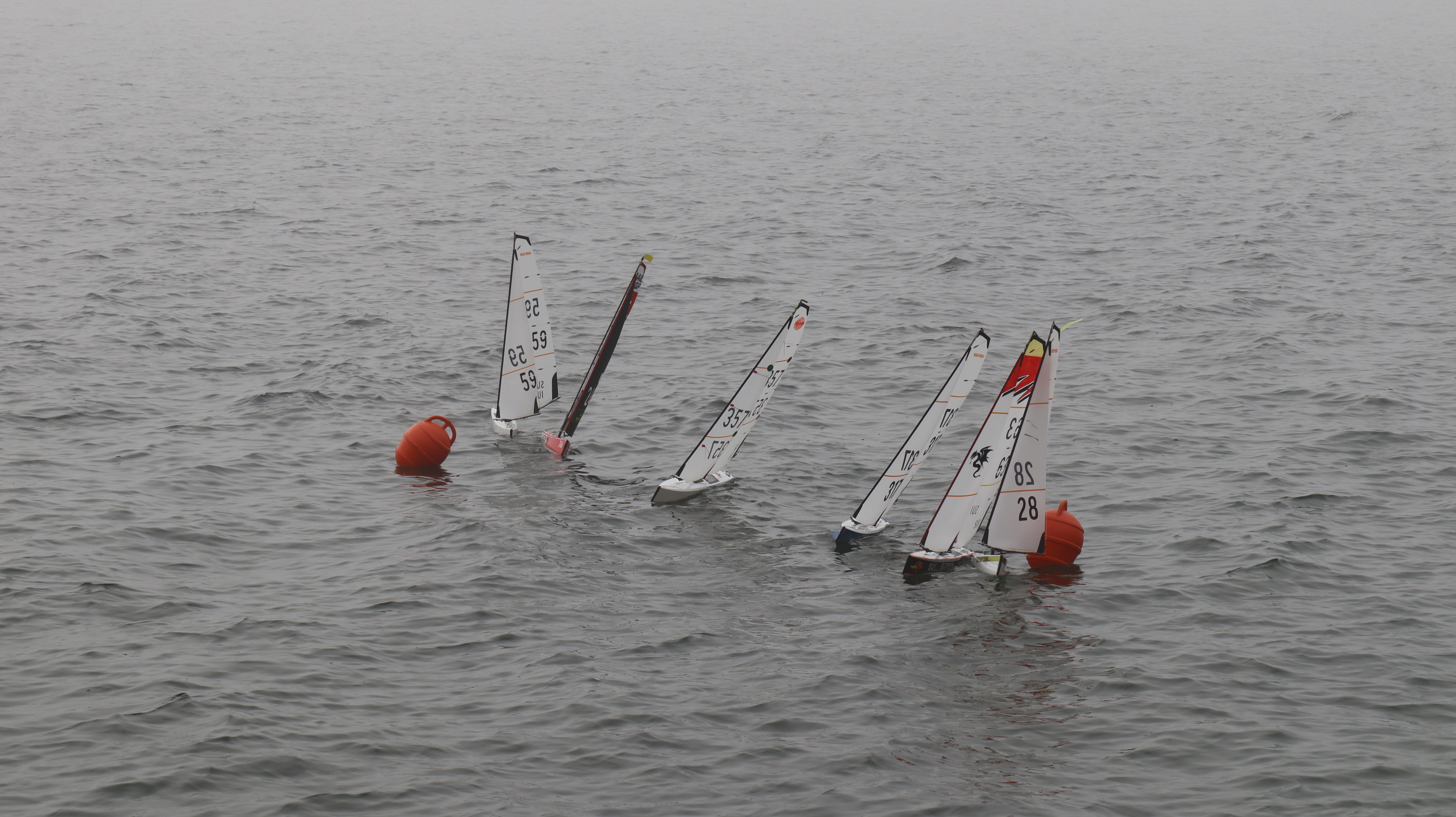 Bei Nebel und doch erstaunlich gutem Wind konnten wir etliche Starts an der ganz kurzen Startlinie üben. Es wurden unzählige Läufe gefahren. Ein wirklich cooler Trainingstag ohne Regen, aber saukalt. Inklusive Bootsrettung am Treppengeländer und Demofliegen eines F3K Wurfgliders.