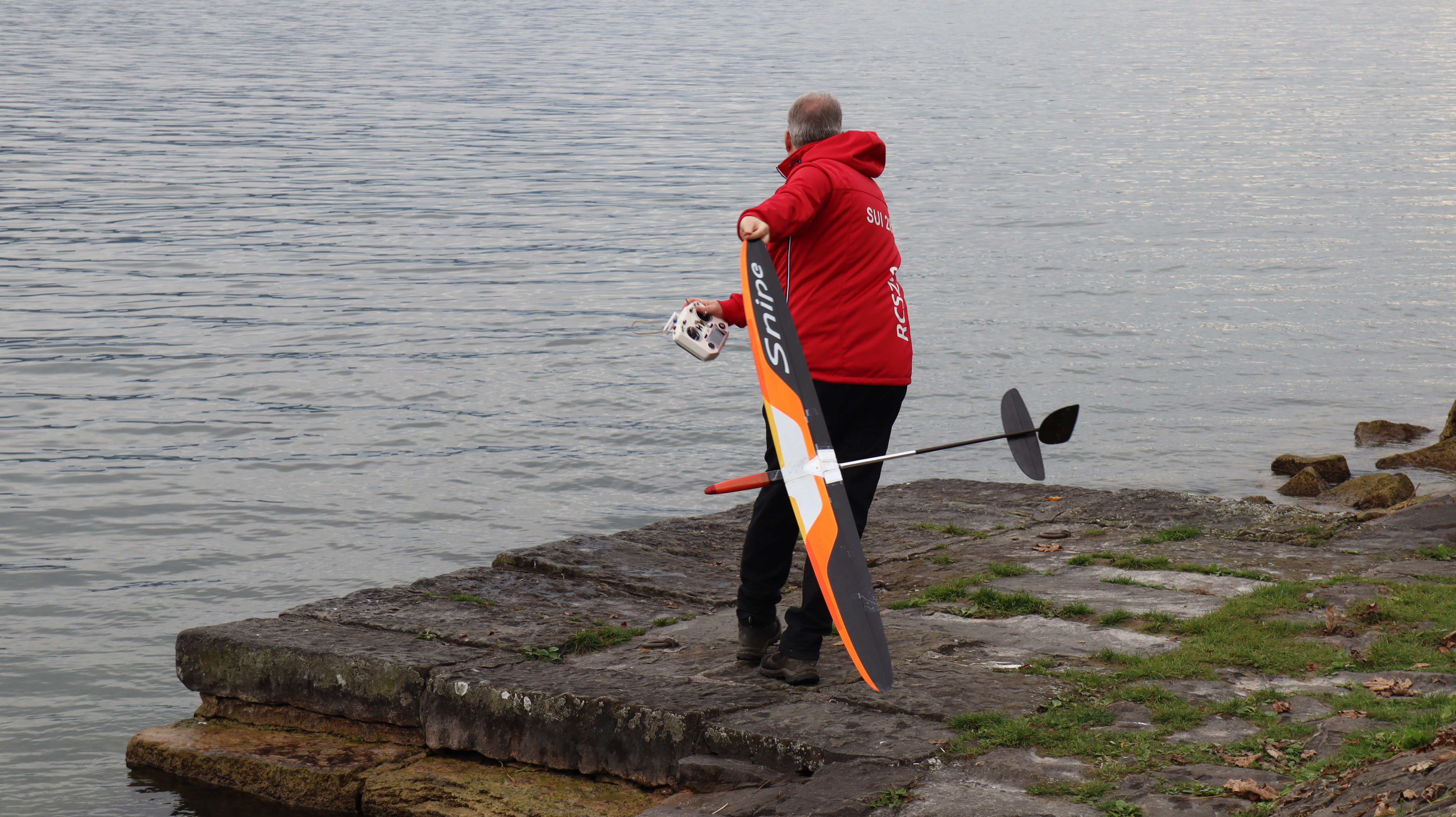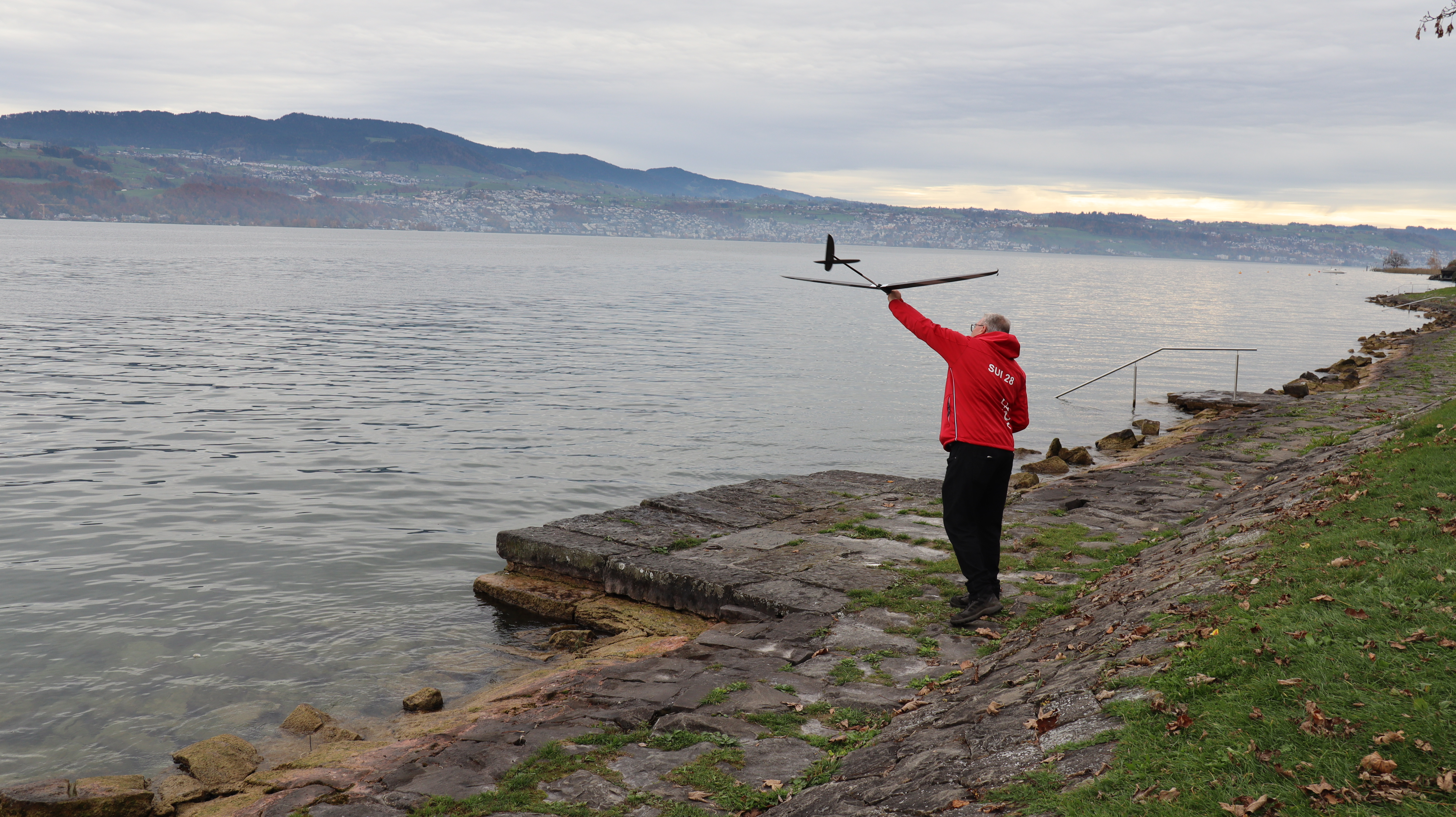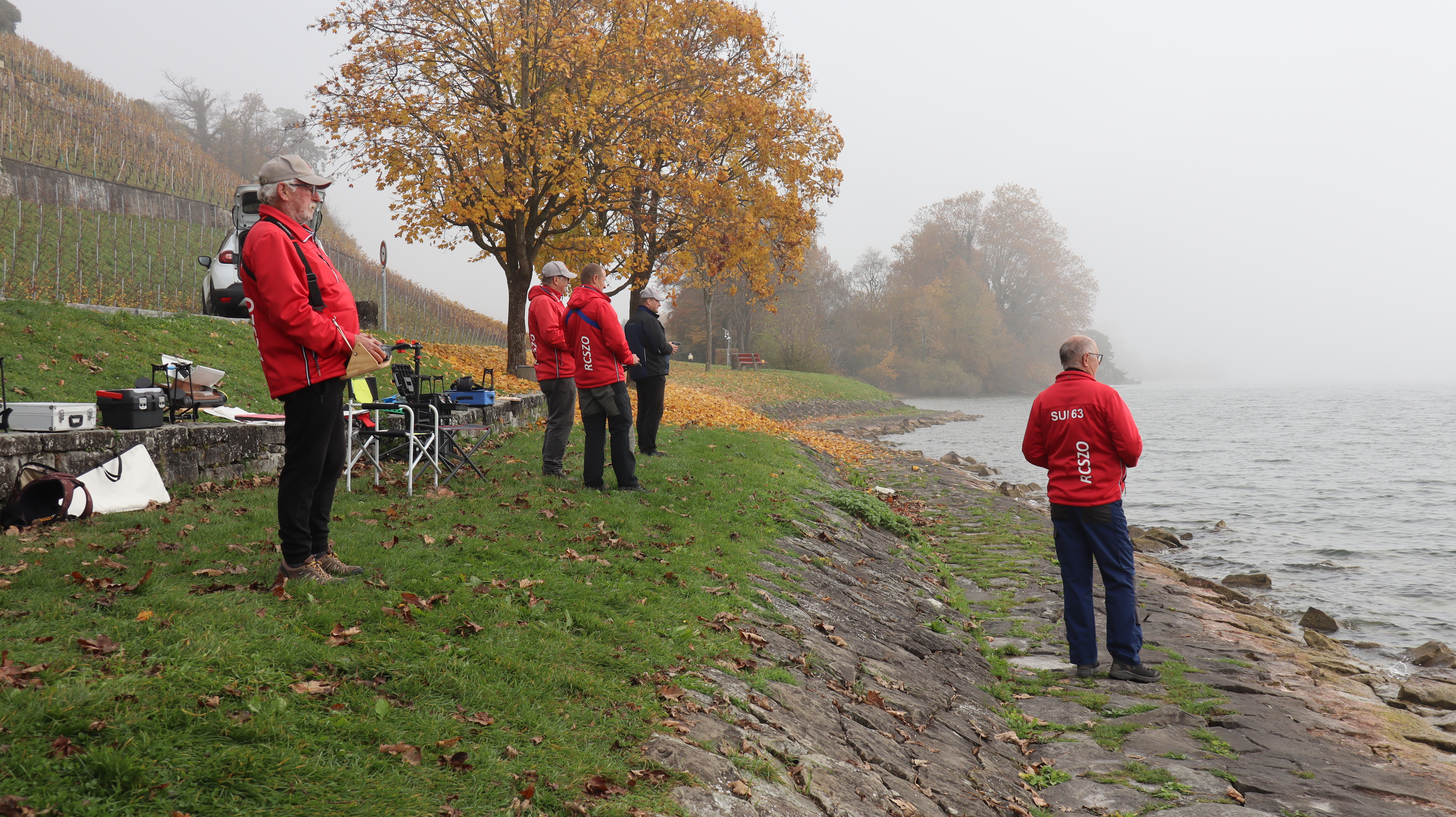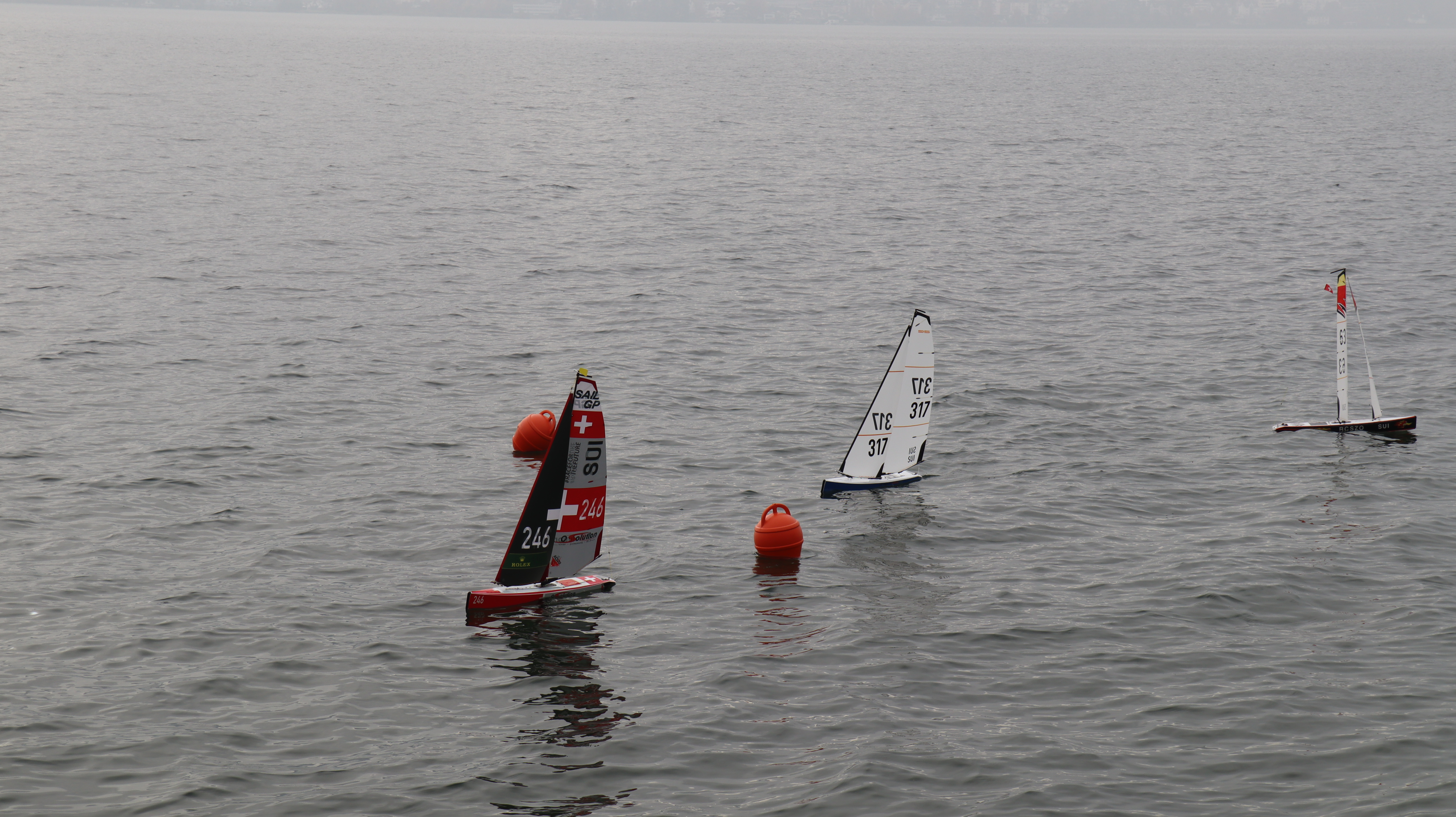 Bei Nebel und doch erstaunlich gutem Wind konnten wir etliche Starts an der ganz kurzen Startlinie üben. Es wurden unzählige Läufe gefahren. Ein wirklich cooler Trainingstag ohne Regen, aber saukalt. Inklusive Bootsrettung am Treppengeländer und Demofliegen eines F3K Wurfgliders.