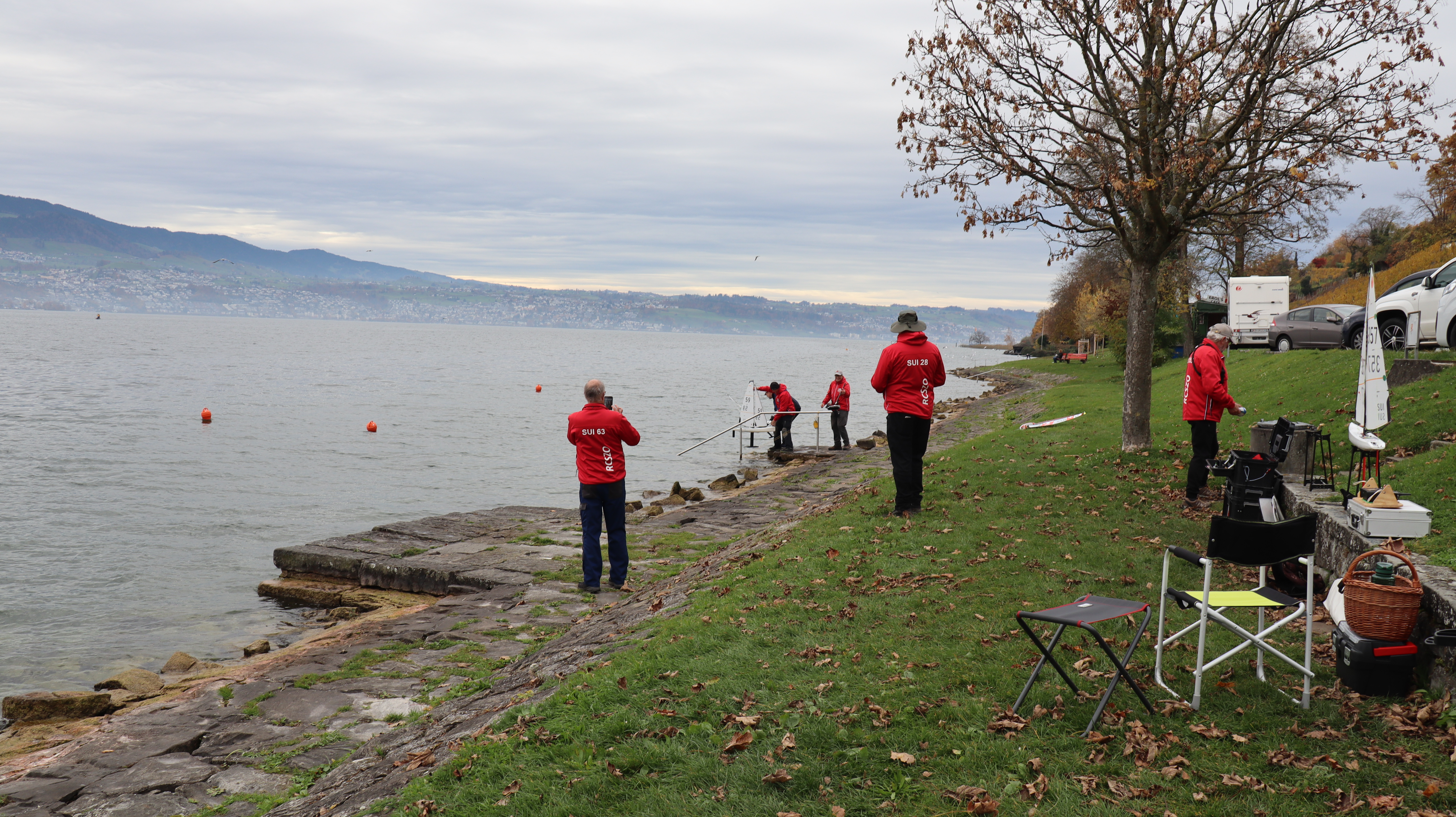 Zum letzten IOM Swisscup haben sich bei kalt/nassem Herbstwetter 14 Segler am Sihlsee auf dem SCS-Gelände eingefunden. Erster Regattafeld Aufbau und aufriggen bei frischen 6 Grad, etwas Sonne und noch kein Regen. Bis zum Eintreffen aller Teilnehmer hat es dann doch leicht zu regnen begonnen. Mangels konstanter und falscher Windrichtung musste der Start verschoben werden, weil der Kurs neu gesetzt werden musste. Insgesamt wurde der Kurs 4x verschoben, bis dann doch ein einigermassen akzeptabler Swisscup Regattakurs stand. Einfach gesagt, es brauchte für alle gute Nerven und viel Geduld.