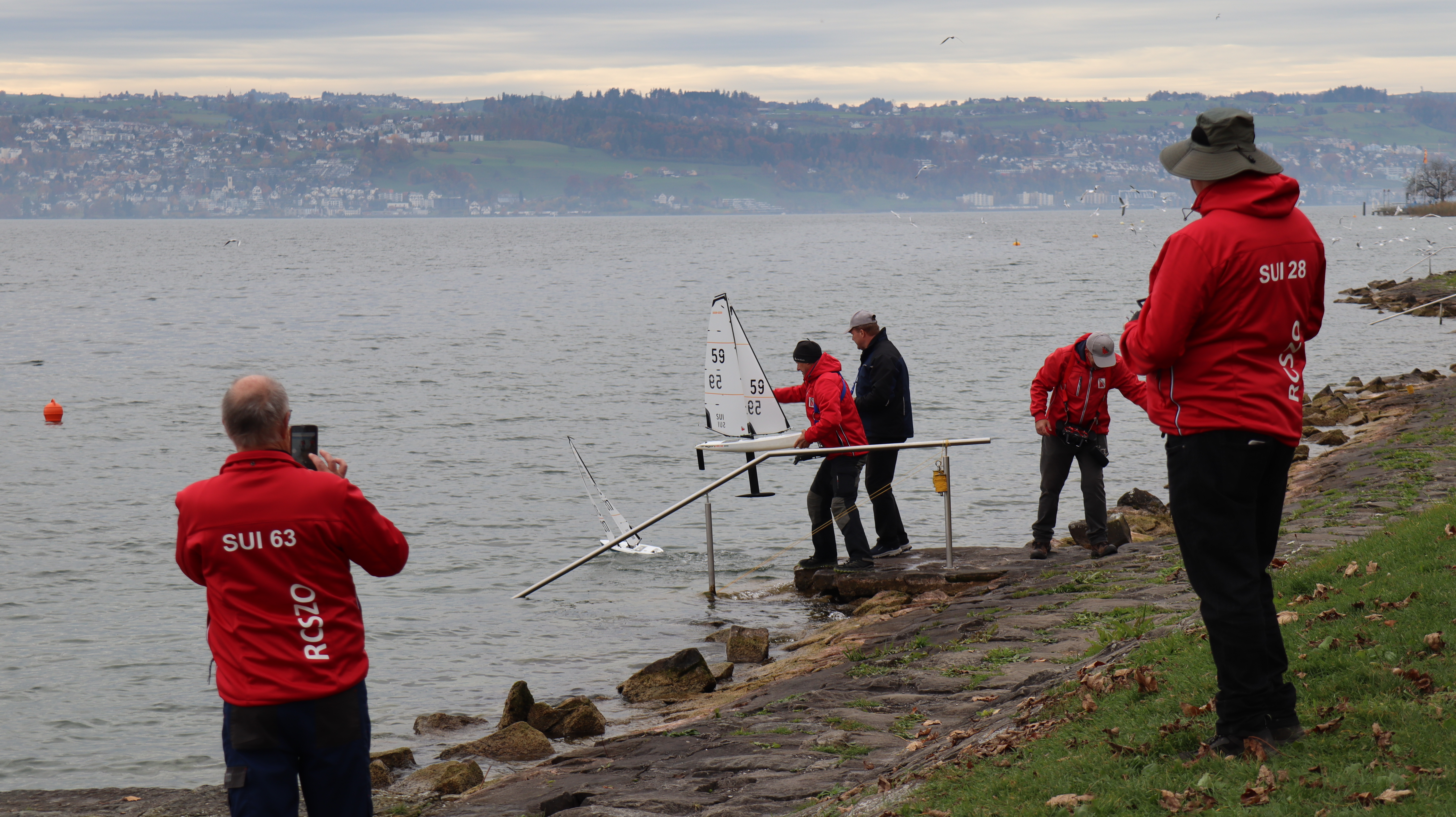 Ein herzliches Dankeschön an den Segelclub Sihlsee für die Location und an das Orga Team: Hans (im Hintergrund), Oli, Patrick, Beat und natürlich Greg als Observer.